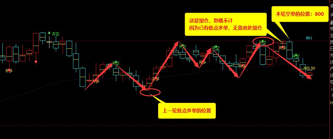 以下是上一轮由空转多的结构与策略,已经在795附近完成减仓,目前是底仓多单配置高点空单进行跟踪。通过以下多空转折系统的表现来看,用心的朋友不难发现,我们交易的短线跟踪策略超95%都是不同结构持仓形成的最高点空单与最低点多单。这就是比价格规则更加神奇的“多空精准转折系统”的领先表现。它可以让你提前一天知道次日是否转多还是转空,亦或是维持现有结构,一目了然。下面,我们截了一张铁矿石4小时多空精准转折结构图,供有缘人欣赏。