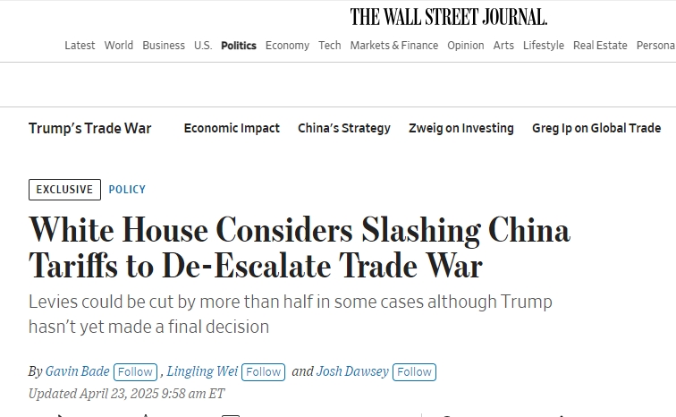 大公文匯全媒體報道,據《華爾街日報》引述白宮官員報道,美國考慮將中國進口產品關稅稅率調低至50%至65%,以緩和對華關係。