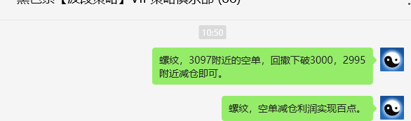 周一(5月26日),螺纹盘面成功下破3000点,至5月15日收市发布由多空转空后,累计10个交易日完成百点跟踪利润。螺纹是从15日收市具备由多转空的条件。15日收市发布16日的策略时,16日是开盘价即最高价,我们没有急于进行临时空单的建立,而是继续把空单策略推迟在17日。17日VIP短空策略:3097-3105,当日盘面高点:3095,精准触及空单的交易价格。成交价格:3095.随后,连续5个交易日呈现出横盘振荡。今日在黑色系整体共振调整背景下,螺纹一气呵成下破3000点。我们跟踪提示于2995附近执行了减仓。空单减仓利润:3095-2997=98点。记得上一轮短线多单获取近120点的跟踪利润。这是螺纹短线跟踪所产生的利润,当然也配合应对策略进行执行。