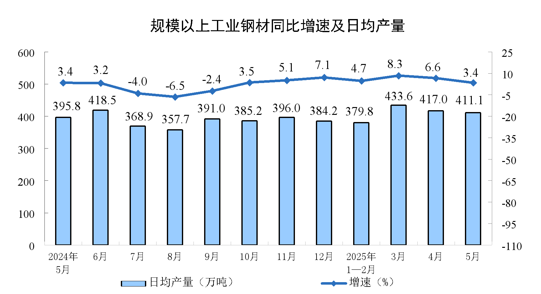 | 生铁(万吨) | 7411 | -3.3 | 36274 | -0.1 |