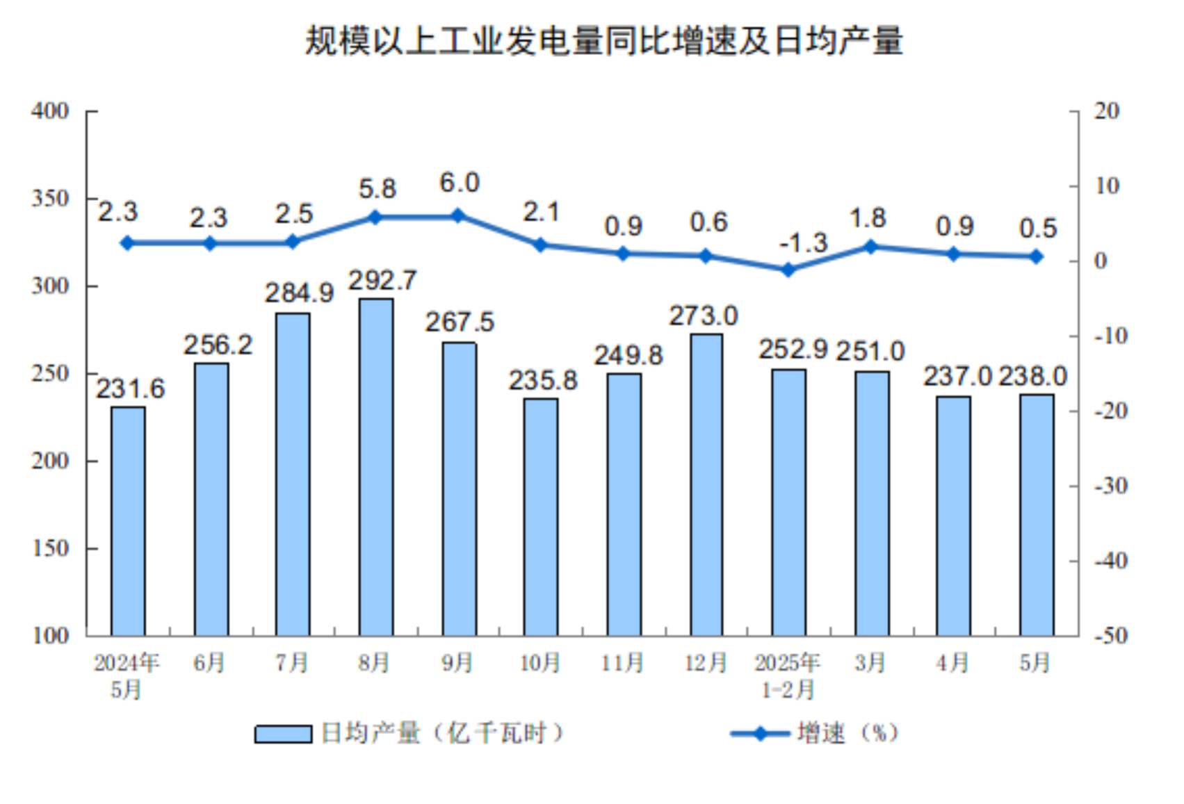 | 规模以上工业发电量(亿千瓦时) | 7378 | 0.5 | 37266 | 0.3 |