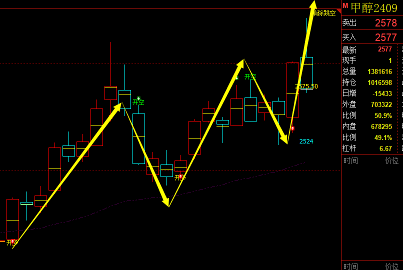 昨日夜盘,甲醇突破前高并触及2643附近,上演了一场经典的多空通杀,想必大家很想知道,我们是如何跟踪并对高点采取应对,以避免发生冲高回落————