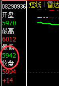 盘面低点:5938,实则为:5942,即K线形成的真正价格